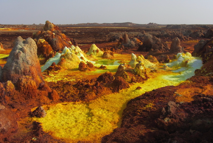 Known as “The Cruelest Place on Earth,” the Danakil Desert is a place where barren, salty soil and unfathomable temperatures are present. This out of this world multi-colored landscape still attracts tourists despite the heat and the high crime rate.