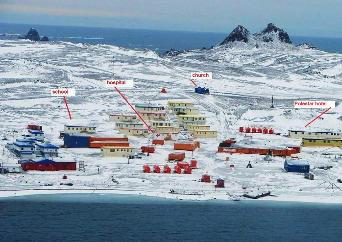 Villa Las Estrellas is a Chilean village and also a research station. It is home to less than 200 people, on King George Island. It is located about 75 miles off the coast of Antarctica.