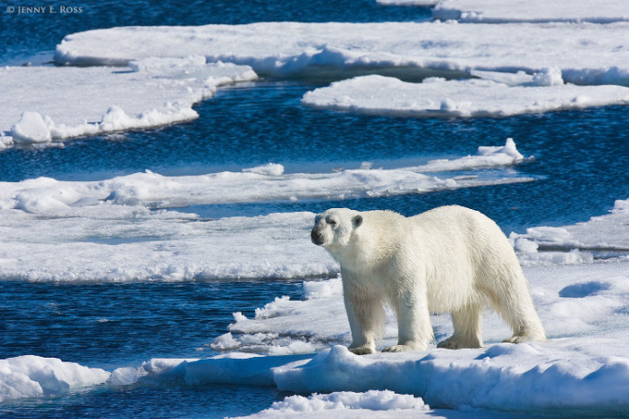 38. An adult male polar bear waiting for its food to come out of its hiding.