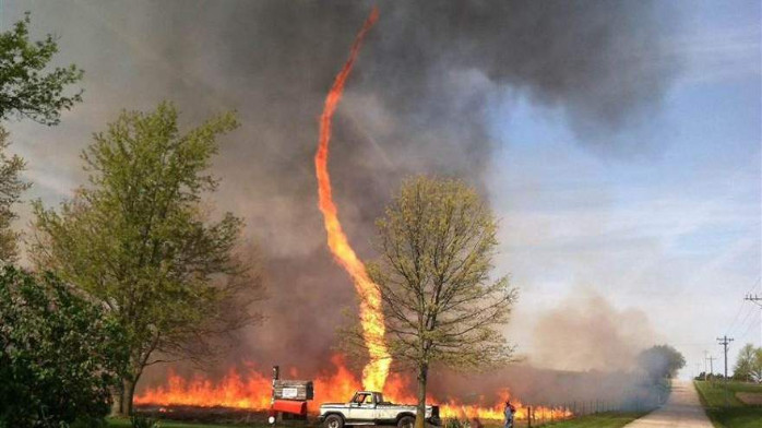 A terrifying firenado was captured as it hits the ground.