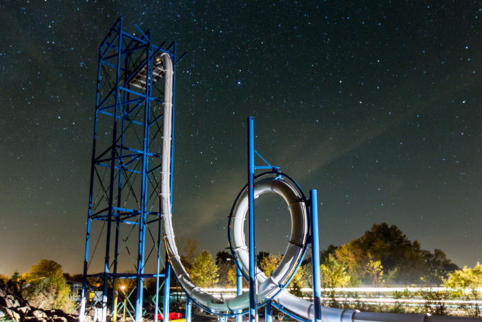 Back in the mid-80’s a slide called Cannonball Loop was built in Action Park in Vernon, New Jersey. As it posed more dangers than an enjoyable adventure, the park was closed in the 90‘s. However, recent developments have included a re-creation of the Cannonball Loop.The new ride is now called the Sky Caliber. It features a 45-foot drop and a 30-foot loop. It sends a rider to an exhilarating plunge at a speed of 50 mph.